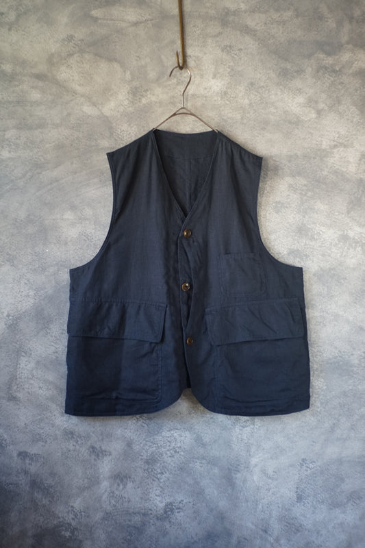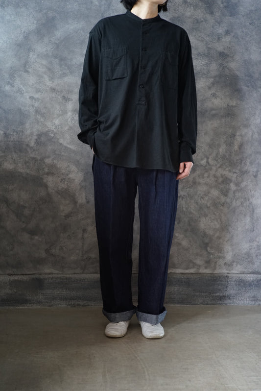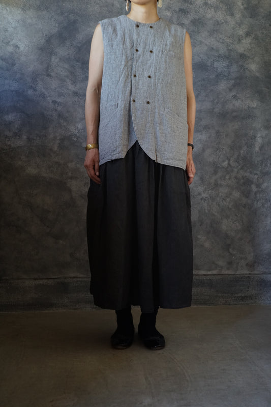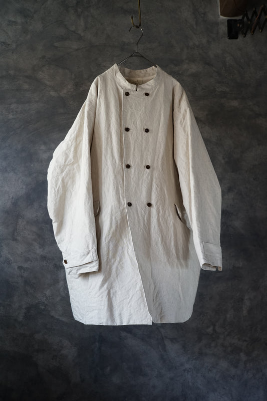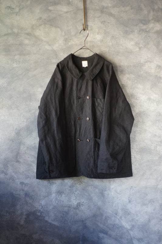 売り切れダブルブレストカバーオール 和紙リネン黒