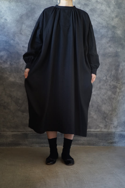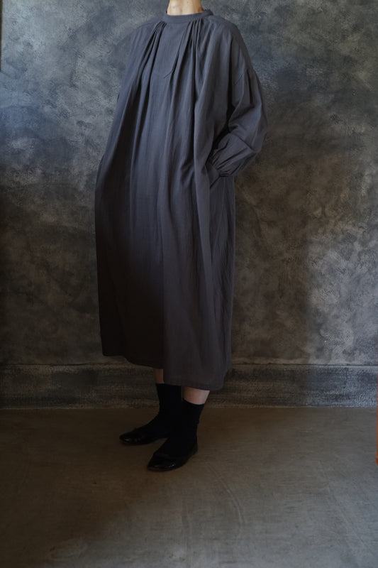 2WAYスタンドカラーリボンギャザーワンピースコットンローン
