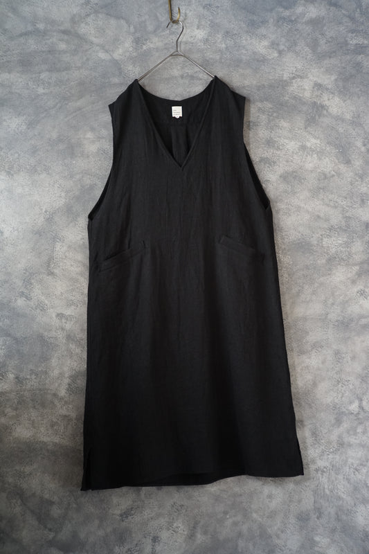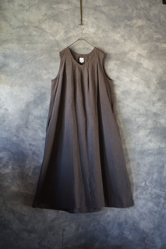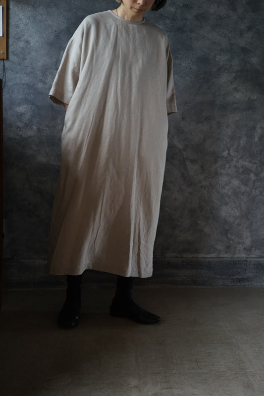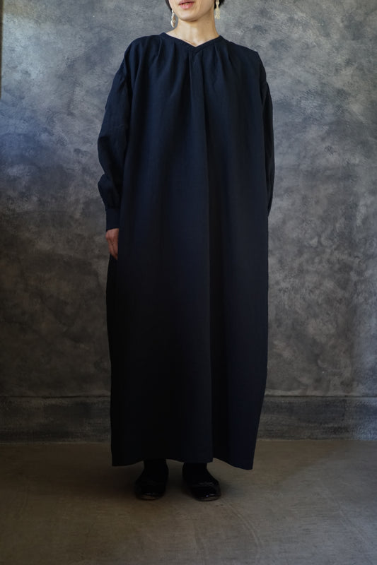 2WAYスタンドカラーリボンギャザーワンピースリネン