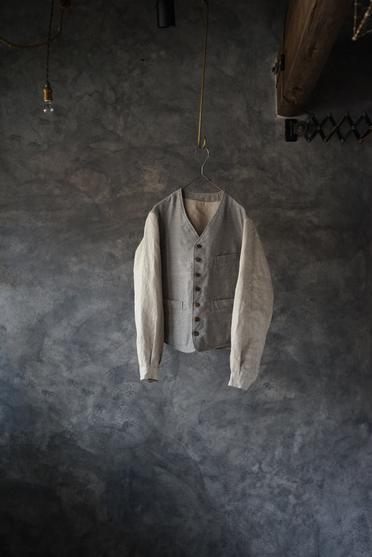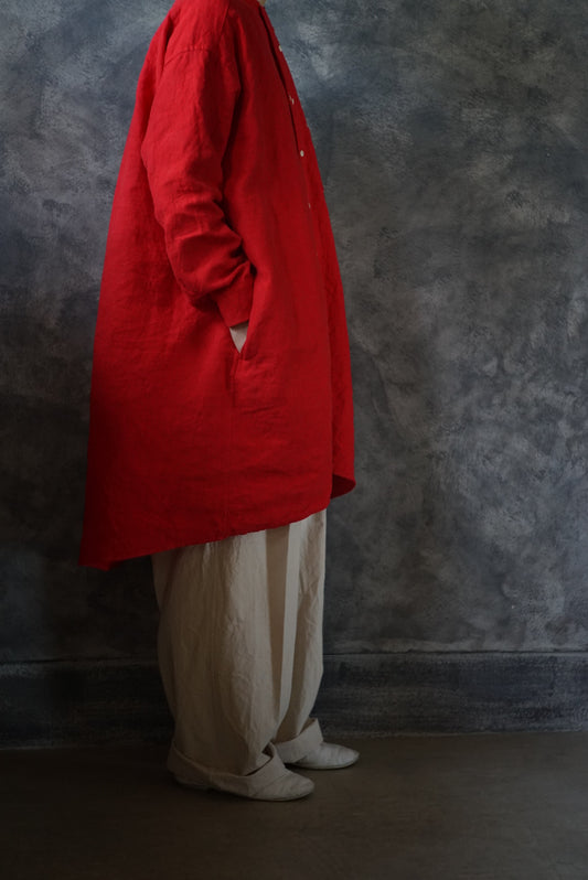 オーガニックコットンリネンフランネルダブルブレストチュニック
