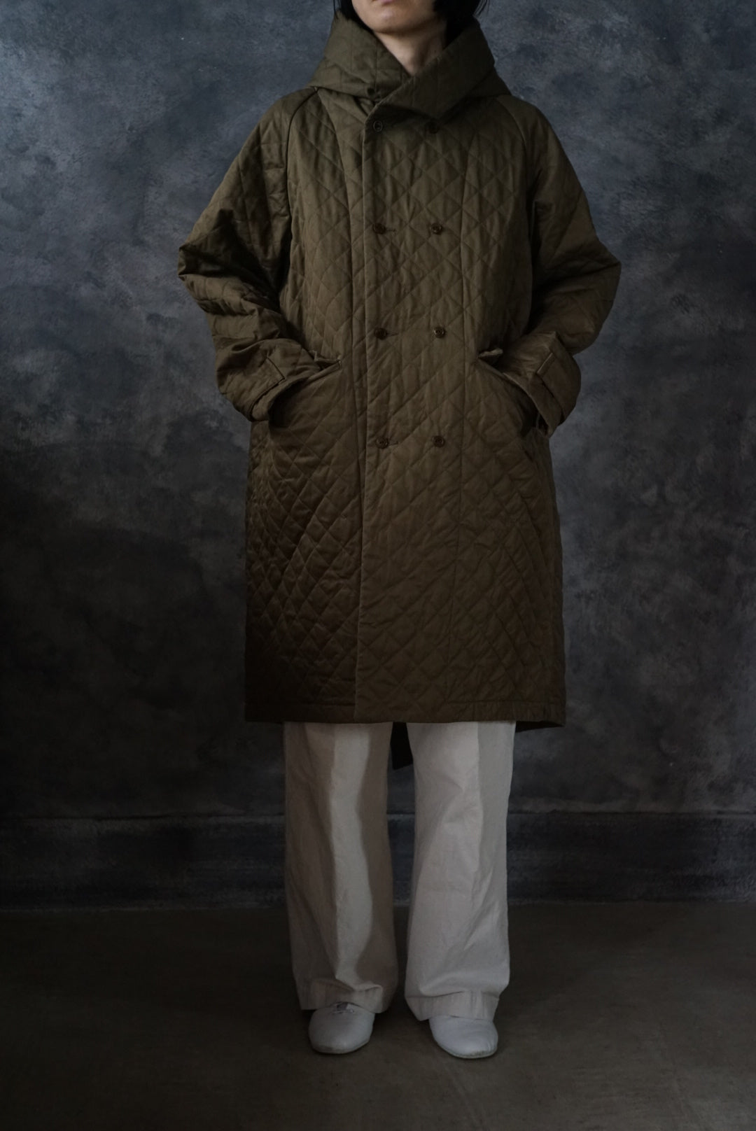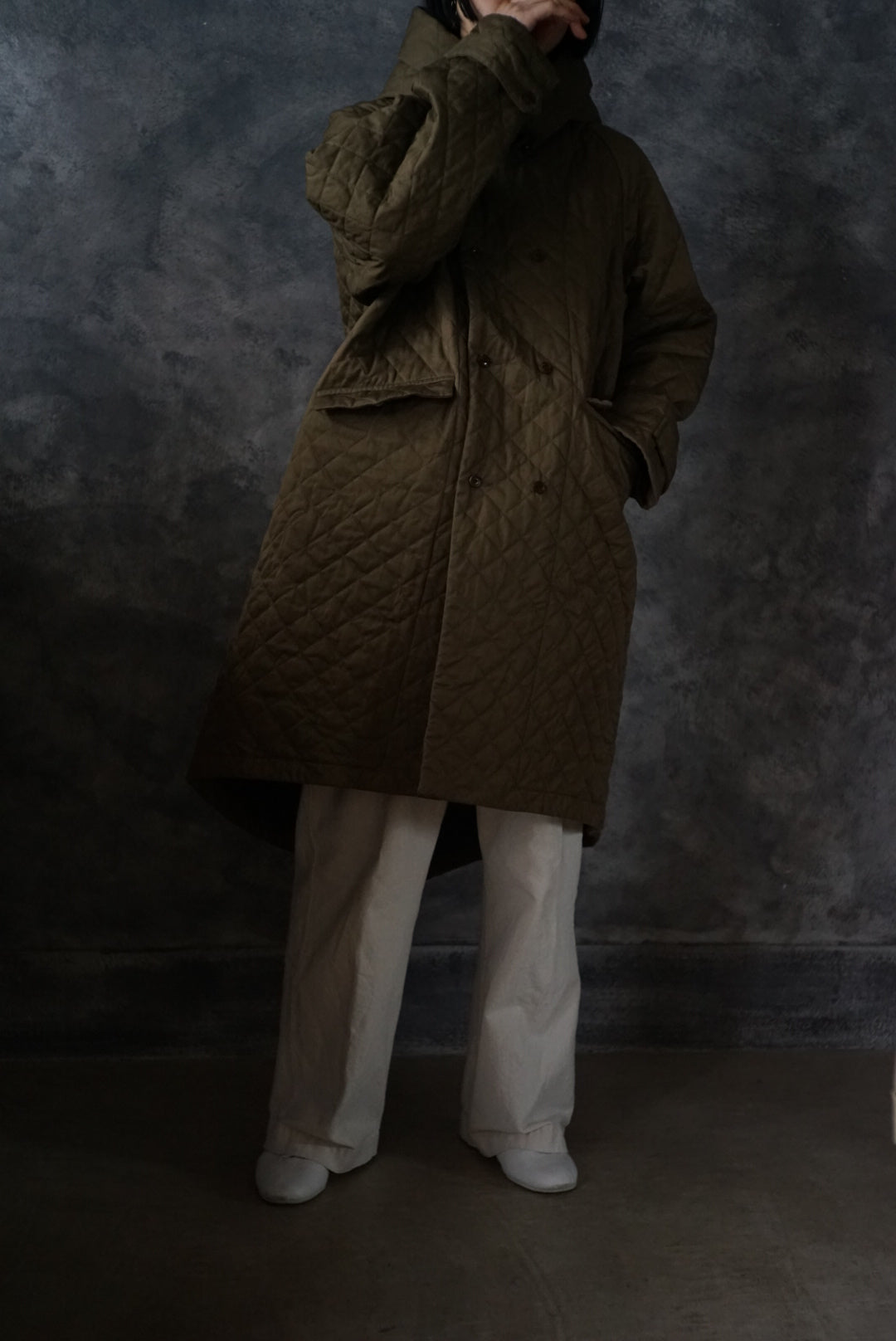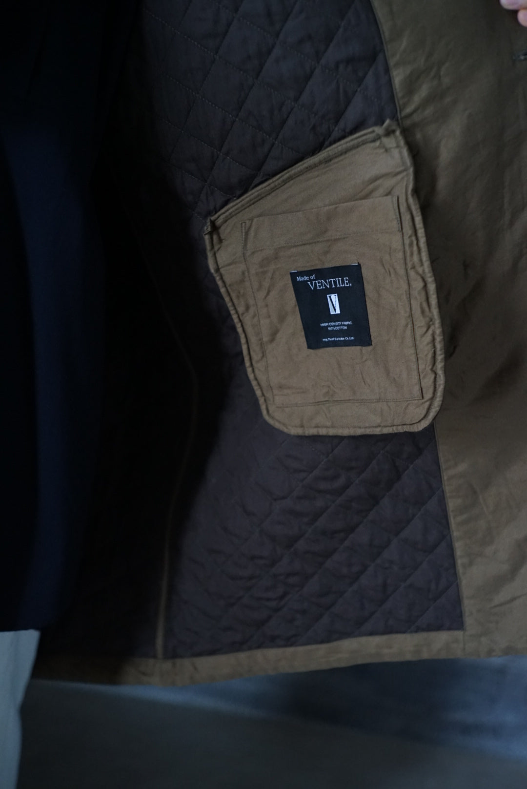 <生地の詳細>表の生地はVENTILE コットン100%、中綿はリサイクルポリエステル30%配合した静電気を抑制し保温効果も高く軽量な高機能素材、肌に触れる部分は打ち込み本数が多いオーガニックコットンのブロードを使用したOwn オリジナルキルトです。