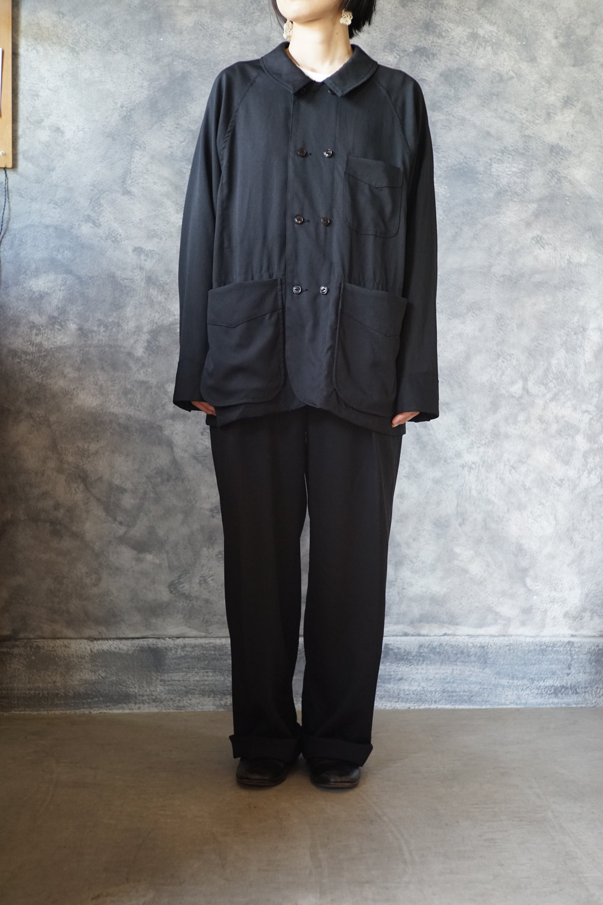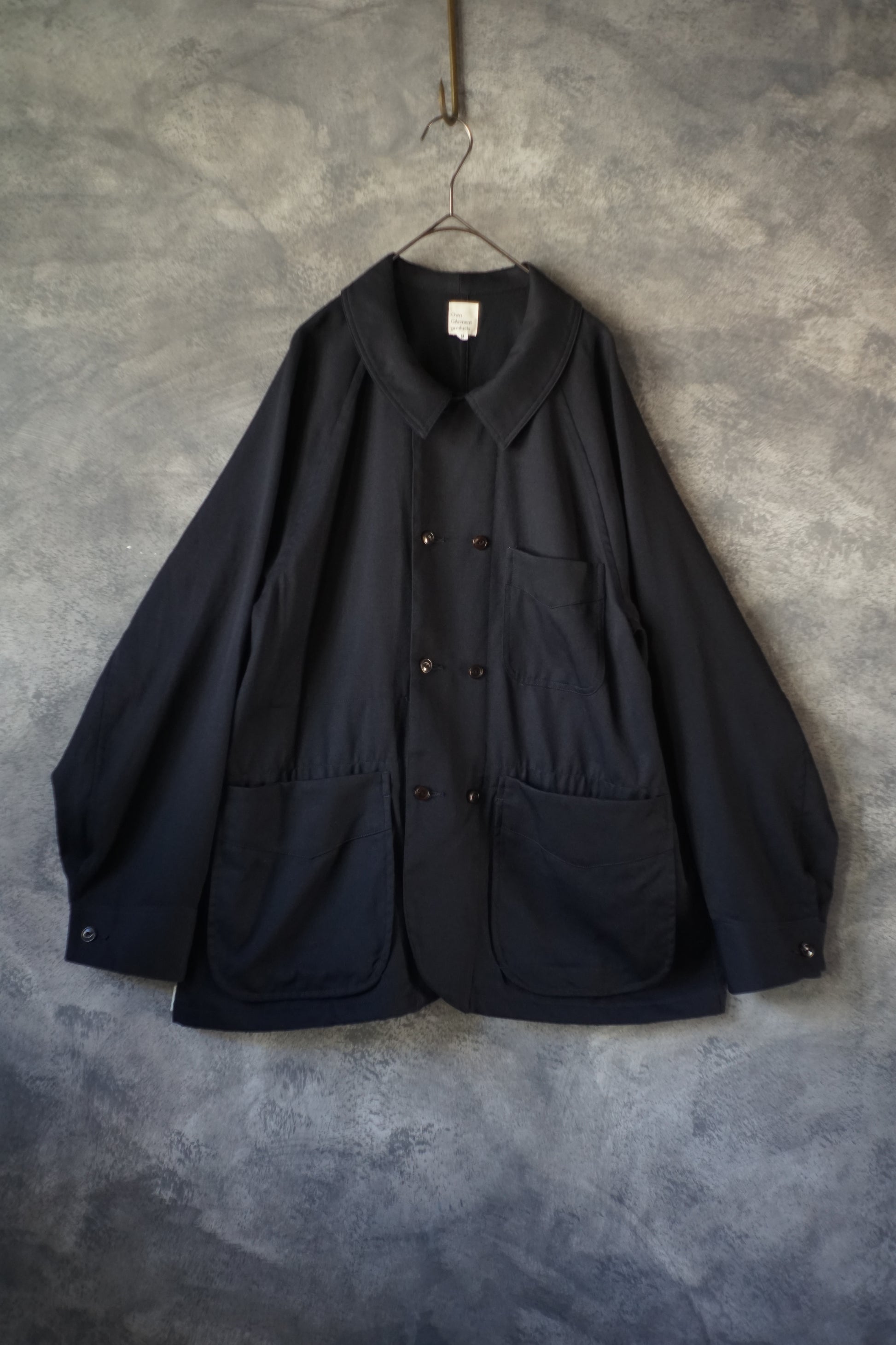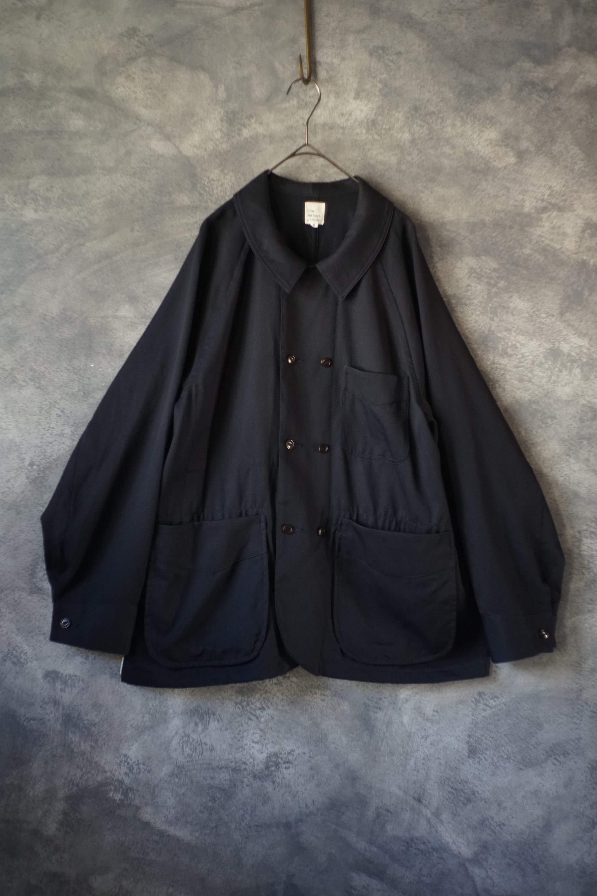 40年代のFRENCH WORKに代表されるダブルブレストジャケットを現代版にアップデートしたようなイメージで作りました。