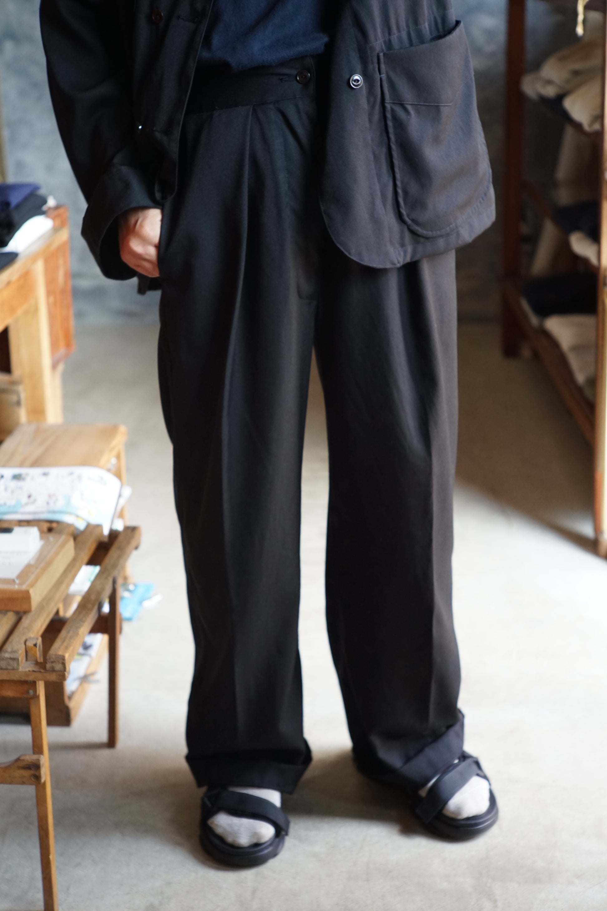生地は※ノンミュールジングウール100%のストレッチツイル。ウール100%でありながらマシンウォッシャブルを可能にし、さらにナチュラルストレッチ加工も施したドレッシーで落ち感のある高級生地でその品の良さは一目瞭然です。